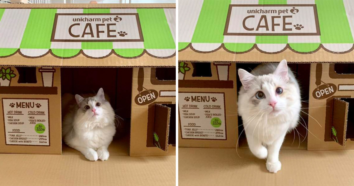 買貓砂還能順便開店! 紙箱變「貓咪咖啡店」來一份老闆帶走~