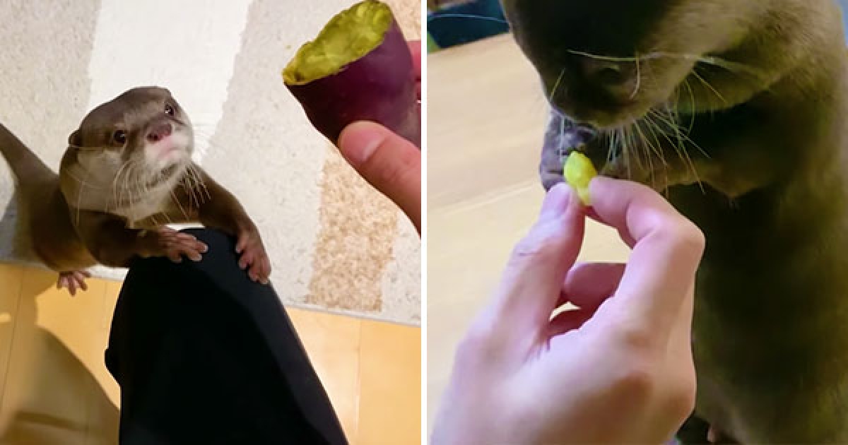 萌水獺聞「烤地瓜香味」飛奔過來 咬一口「呸呸呸」反應超好笑