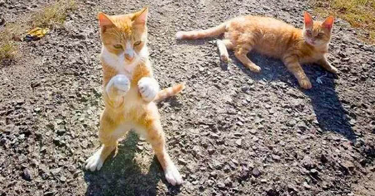 攝影師跟蹤「3隻小浪橘」拍到趣味生活 空地練爪:ㄘ我的喵掌啦!