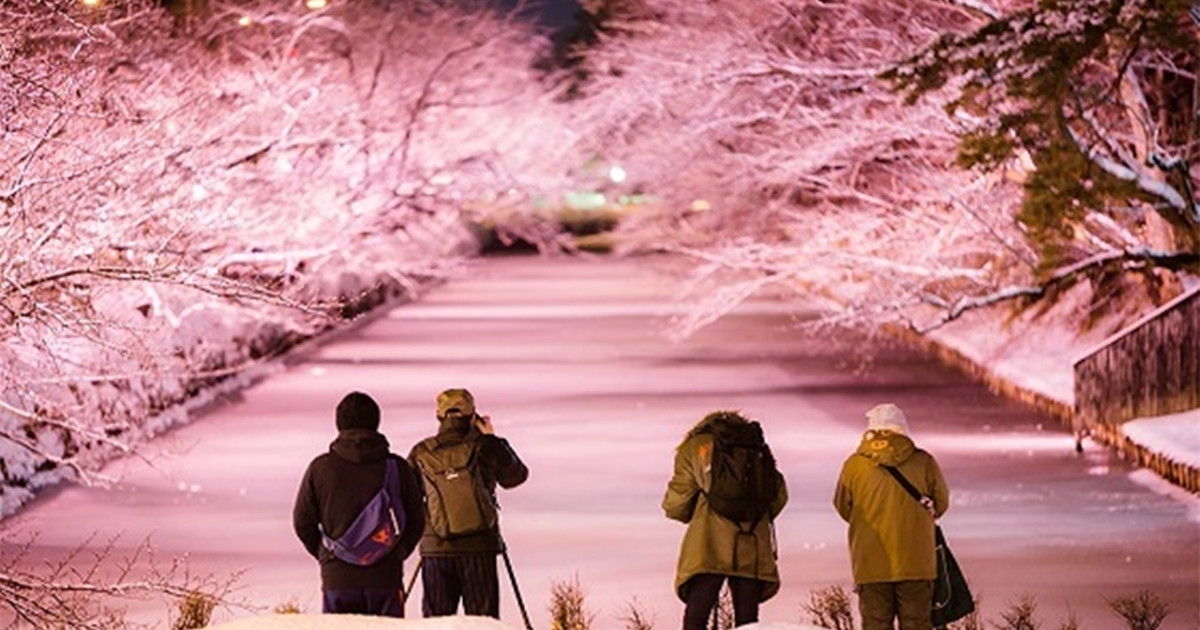 日本寒冬驚現唯美「櫻花河」 湊近一看竟是「創意雪櫻奇景」