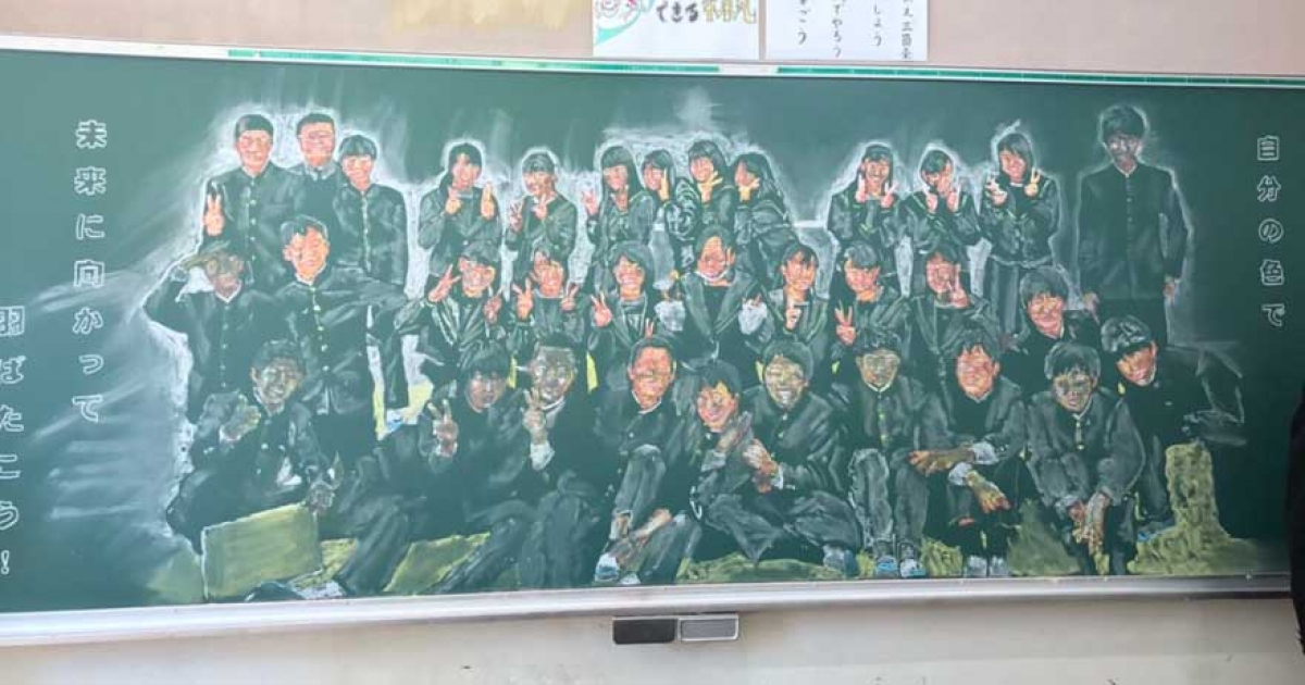 日本老師「超強黑板畫」送學生當畢業禮物 各地學生不服曬:我家老師更厲害!